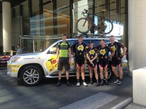 What a spectacular day last Wednesday when Team CommBank gave “world largest barbie” contestants a real scare with the Commonwealth Bank Place Tour de Cure sausage sizzle. Super hot and sunny – people turned up in droves to pick up a sausage and support the cause whilst 5 of us (Dave Curran, Rachelle Koster, Tim Brown, Rob Armstrong and myself) sweated it out on the trainers for nearly 3 hours. We were not anticipating lunch to be a training ride in its own right but it ended up there! Great turnout – we fed over 1,000 mouths and raised $5,200 for TDC. Also went through 6 bottles electrolyte, 2 sausages and a Cadel Evans winners bar during the “ride”.