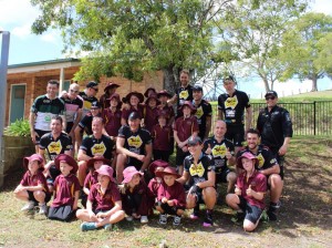 Day 3 was a chilly red jacket start through the border ranges and over into NSW (that’s where the really bad roads started!!). It was a great day of riding through ever changing terrain. The highlight of today was the visit to the tiny school of Wiangaree. 18 kids listened to our “Be Fit, Be Healthy, Be Happy” message.