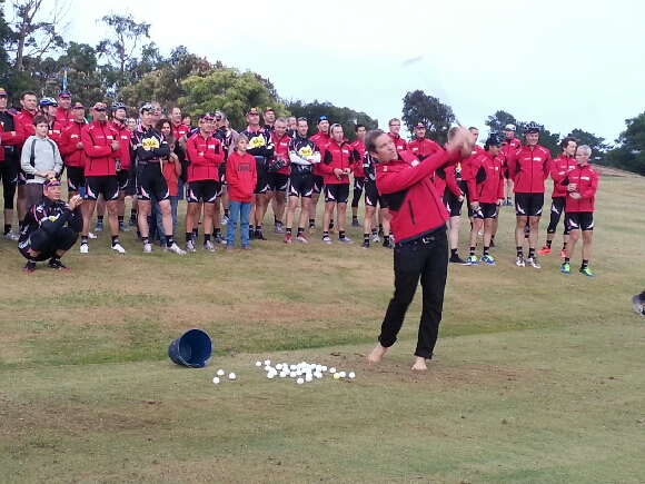 Dressed and off at 5:30 for the Meningie hole in one challenge. With most of the town turning out at 6 in the morning some exceptionally bad golfers contributed another $350 to the tour tally. We also met a local shearer who recently became one of only 140 Australian men diagnosed with breast cancer in the last 12 months. He found a lump, checked it out much to the hilarity of his mates and saved his life.
