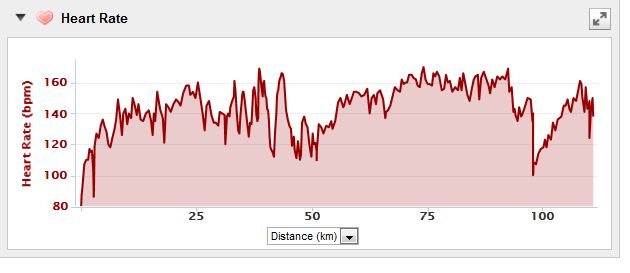 The Garmin watch provides a range of useful data, including my heart rate average (141 bpm) and max (172 bpm) from a recent training ride.