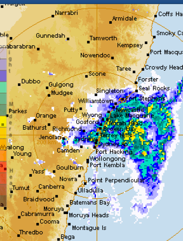 Well, the plan had been to do a decent Saturday ride leading into a longer ride on Sunday – however the weather had other ideas! On Saturday Sydney was sitting below the remnants of the recent QLD tropical storm and as you can see from the weather chart below things were a little wet out there. Fortunately we’re still at the stage where the training rides are optional … and on SaturdayI had no hesitation in taking the option of going back to sleep. On these occasions there is a little bit of guilt (someone may actually be riding), a bit of frustration (we do need to get enough rides in to ease the pain on Tour) … but to be honest the main feeling is pleasure as you crawl back into a warm bed!